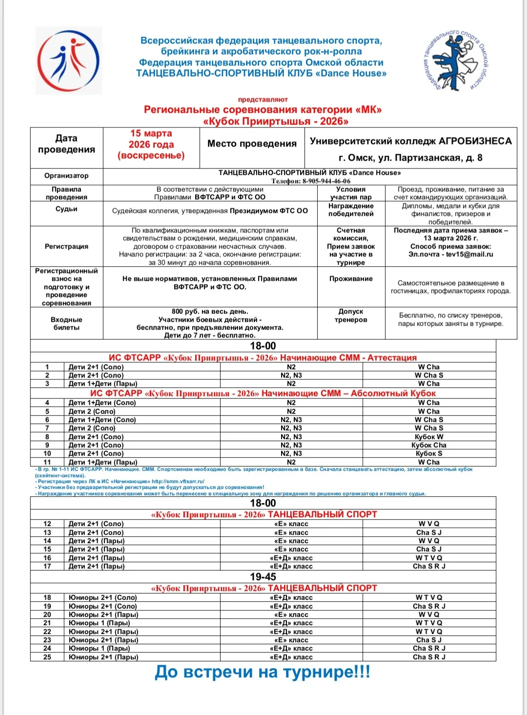 РС В | Кубок Омской области по танцевальному спорту | ОООО «ФТСОО» | | | |